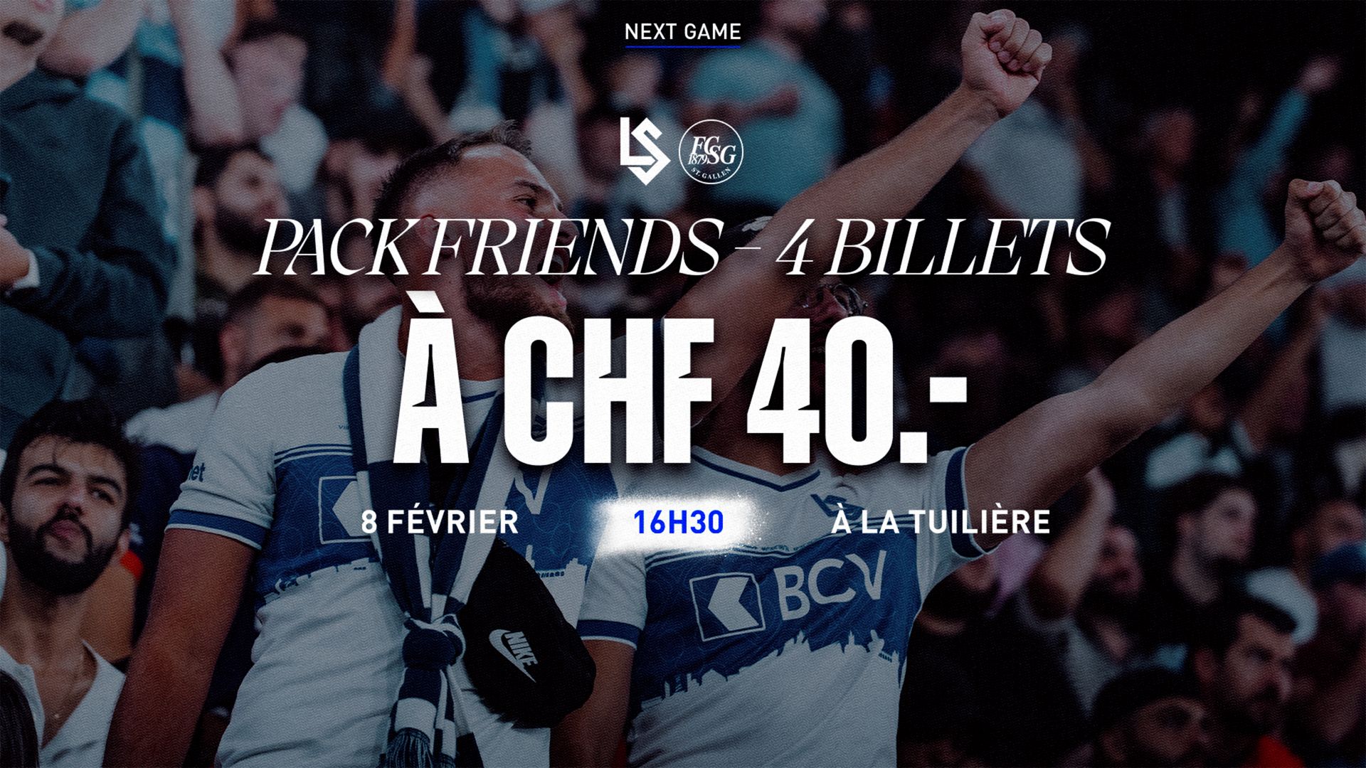 Les billets sont proposés à CHF 10.- en catégorie C2 avec le pack Friends Deal.