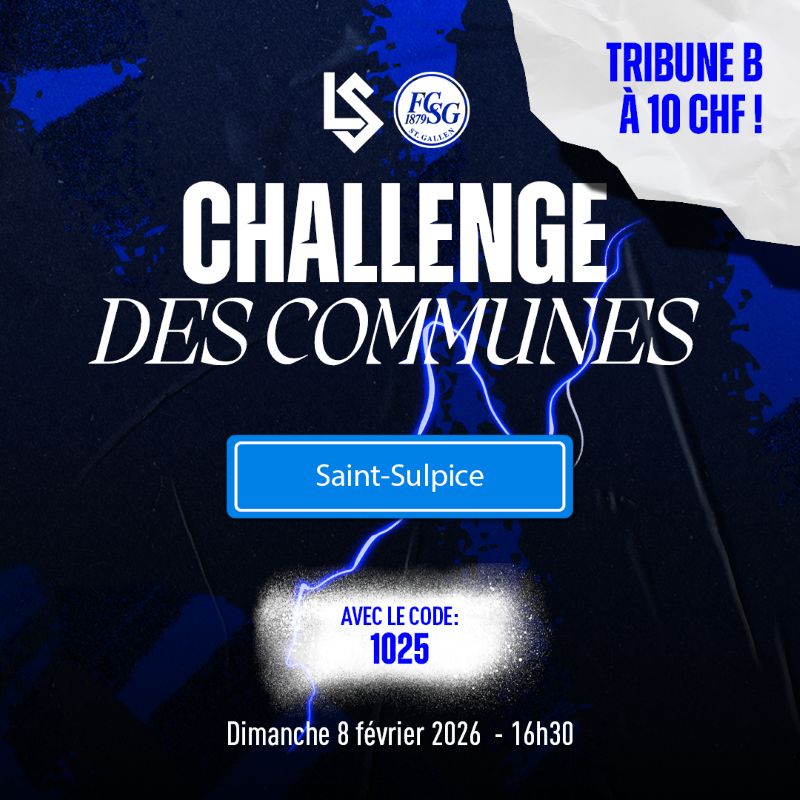 La course est lancée! Dans le cadre du Challenge des communes, le FC Lausanne-Sport invite toute sa communauté à se mobiliser pour remplir la tribune B du Stade de la Tuilière lors du match de ce dimanche: FC Lausanne-Sport – FC Saint-Gall.