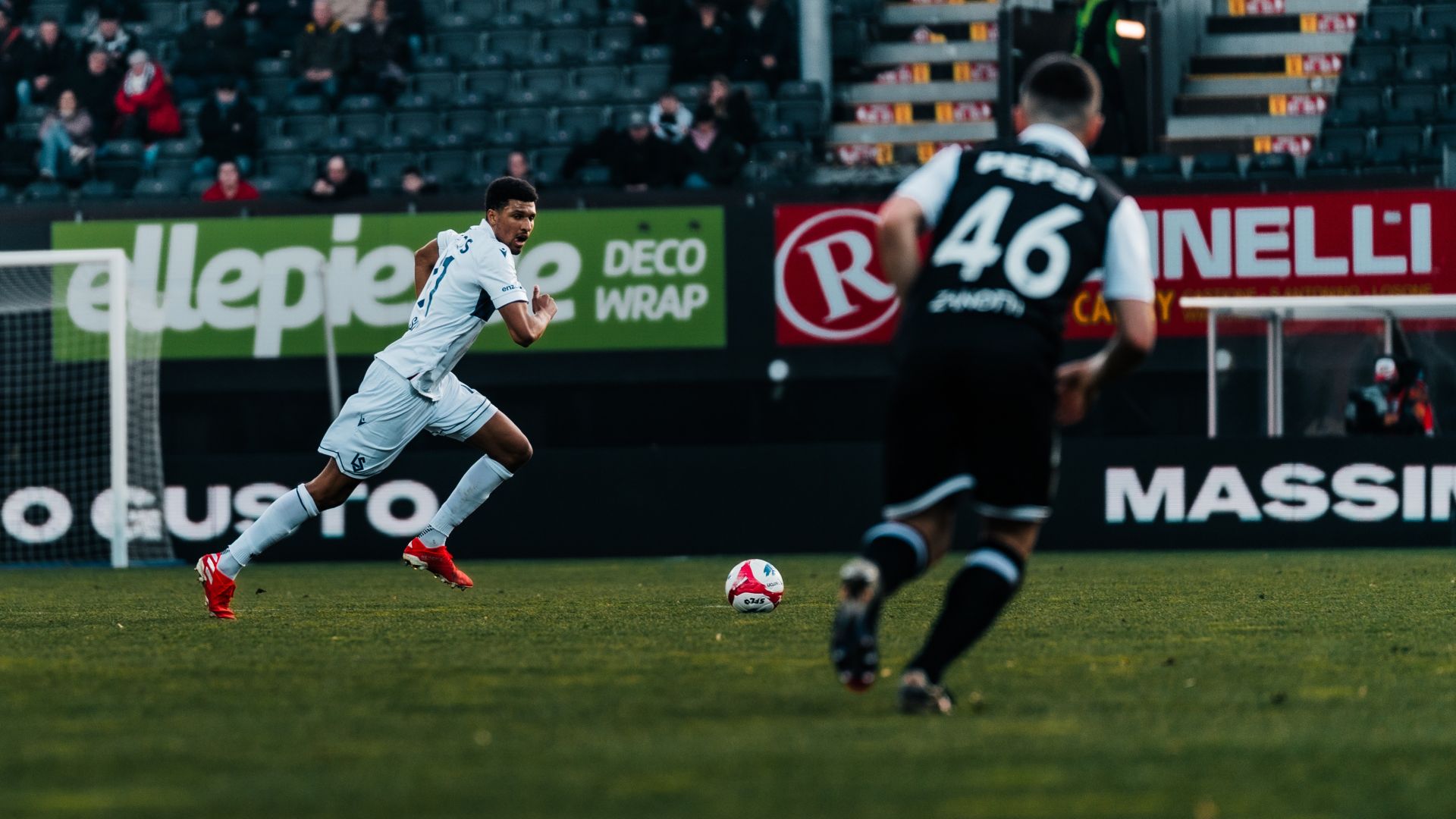 La pression finit par payer à la 36e minute. Grgic adresse un centre précis en direction de Renato Steffen. Ni Karim Sow ni Morgan Poaty ne parviennent à anticiper le déplacement de l’attaquant bianconero, dont la tête trouve le petit filet hors de portée de Letica. Malgré une réaction lausannoise timide en fin de période, le LS rejoint les vestiaires mené 1-0 face à un adversaire qui affiche plus de 70 % de possession de balle.