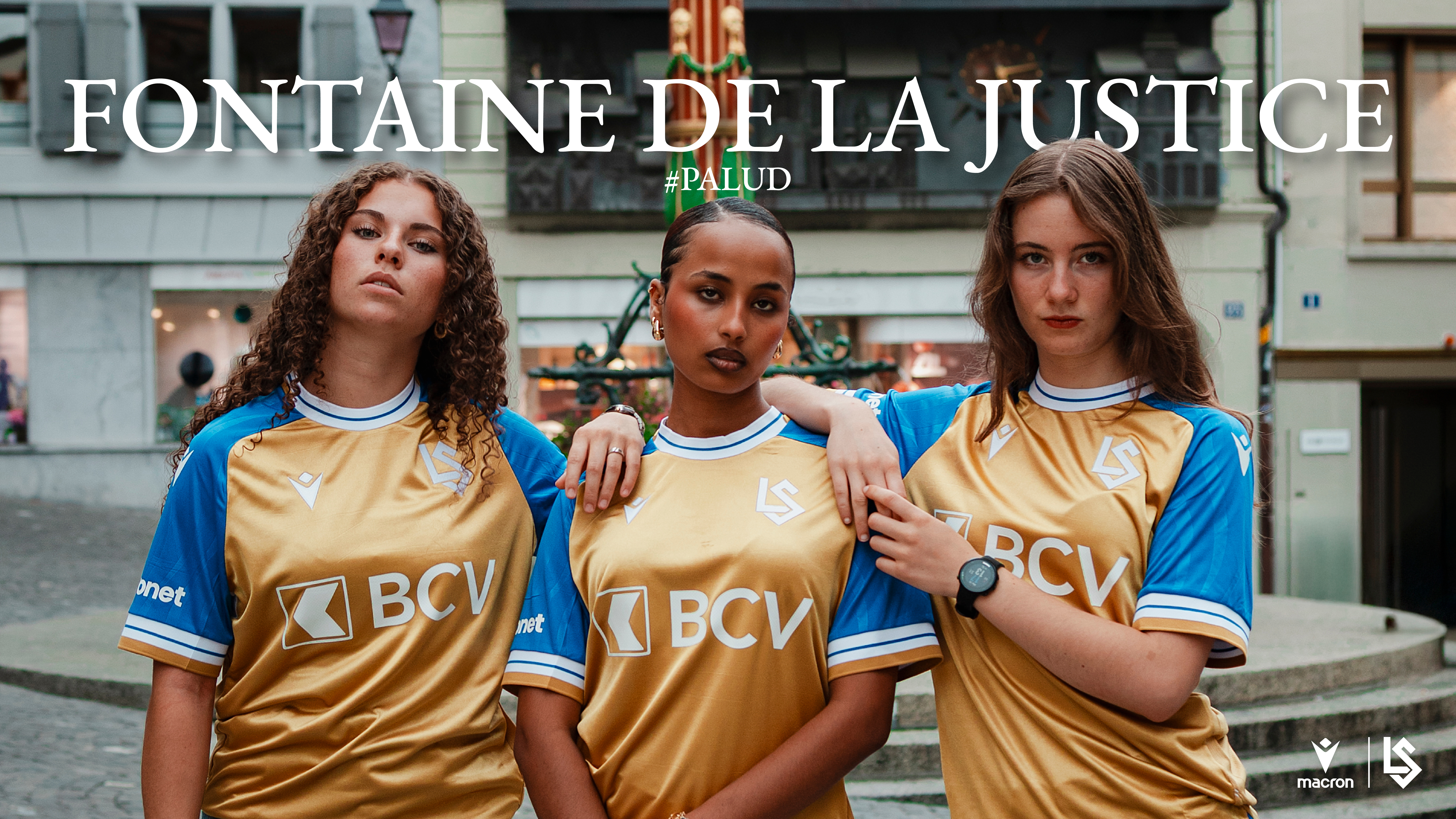La place de la Palud est centrale dans la vie des Lausannois. Au cœur de cette place veille depuis 1585 la statue de la justice. C’est de cette figure féminine forte que s’inspire le troisième maillot du LS. Elle veille. Nous jouons!