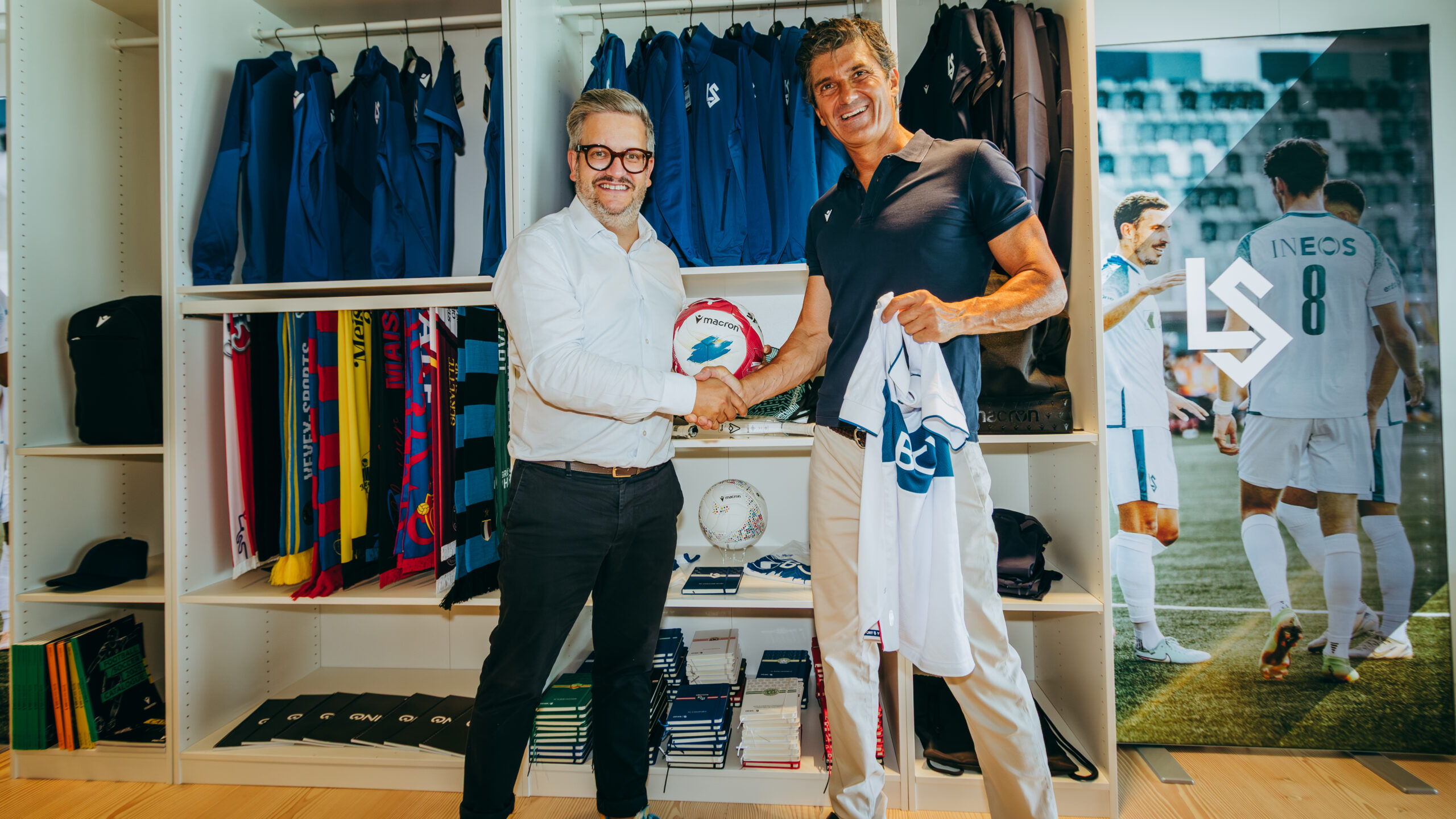 Dans les locaux du stade, les représentants de la marque italienne ont échangé avec le vice-président du LS, Vincent Steinmann, ainsi qu’avec le département marketing du club. Les discussions ont porté sur la qualité des pièces confectionnées par Macron pour le club vaudois et sur les projets à venir dans le cadre de ce partenariat. Ce fut également l’occasion de leur présenter la loge ONIS — distributeur officiel de Macron en Suisse — qui sera inaugurée prochainement.
